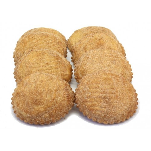 Frisse appelschijf, met een toefje banketbakkersroom gemengd met amandelspijs in de kern, verpakt in roomboterbladerdeeg, gebakken in 100% arachideolie en na het bakken direct door een mengsel van kaneel en suiker gehaald.