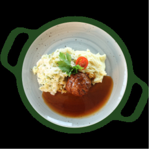 Gehaktbal vegetarisch met jus, savooiekool a la crème en aardappelpuree (vegetarisch)