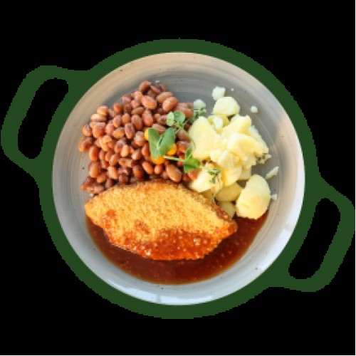 Schnitzel(vega) Jus(vega) Bruine bonen Aardappelen gekookt